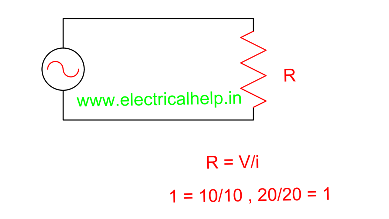 लेकिन V/R की वैल्यू अभी भी 20/20 = 1 ohm ही आएगी। अगर 10 की वैल्यू आधी की जाए तो भी ऐसा ही रिजल्ट आएगा क्योंकि जो लोड इसमे जुड़ा है उसकी वैल्यू 1 है। क्योंकि जब लोड फिक्स वैल्यू का होता है तो वोल्टेज बढ़ाने पे करंट भी बढ़ जाता है और वोल्टेज घटाने पे करंट भी घट जाता है। और ohm’s लॉ हमेशा फॉलो होता है।