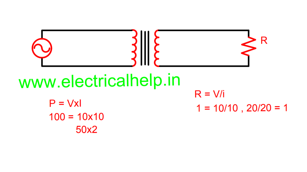 तो जब रेजिस्टेंस फिक्स होता है और हम रेसिस्टेंस का कैलकुलेशन करते हैं तो वोल्टेज के साथ करंट भी बढ़ता है और हम R = V/I ये फार्मूला लगाते हैं। लेकिन जब हम ट्रांसफॉर्मर का कैलकुलेशन करते हैं तो पावर का मान के चलते हैं के ट्रांसफॉर्मर के दोनों साइड पावर बराबर ही है तो ऐसे में हम P = V×I ये फार्मूला यूज़ करते हैं। ये अब ये दोनों ही फार्मूले काम करते हैं।